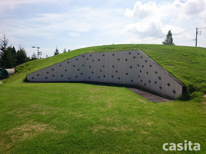 大型遊具の近くには、ロッククライミングがあり、高さは大体ですが2メートル超、足腰が鍛えられそうな感じでいいですね!