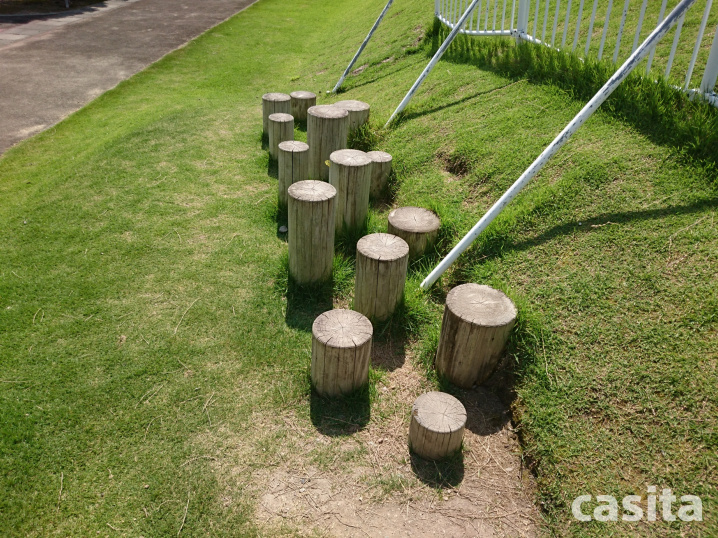 色んな高さの丸太たち。