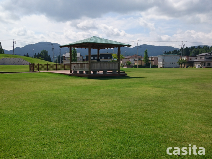 木製の東屋があり、休憩するには最高です。