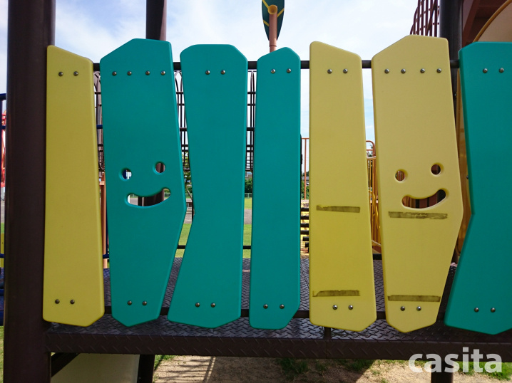 遊具の壁面にはニコニコと笑っているニコちゃん(勝手に名付けました)が子供たちを見守っています。