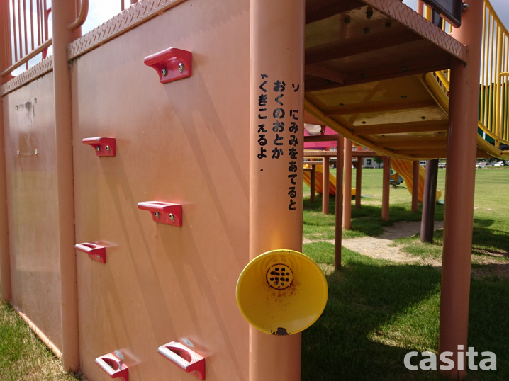 こちらは、反対側にも同じのが設置されていて、耳をあてると奥の音が聞こえるんだそうです。「もしもし~?」って反対側にいる子に話しかけても面白そうですよね!