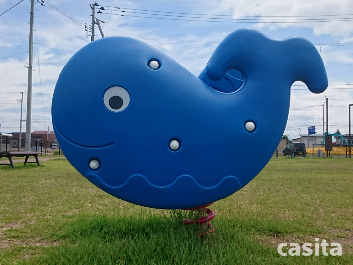 にこにこと笑っているお顔がとっても可愛いくじらさん、こちらは上下の動きなどを楽しむスプリング遊具です。